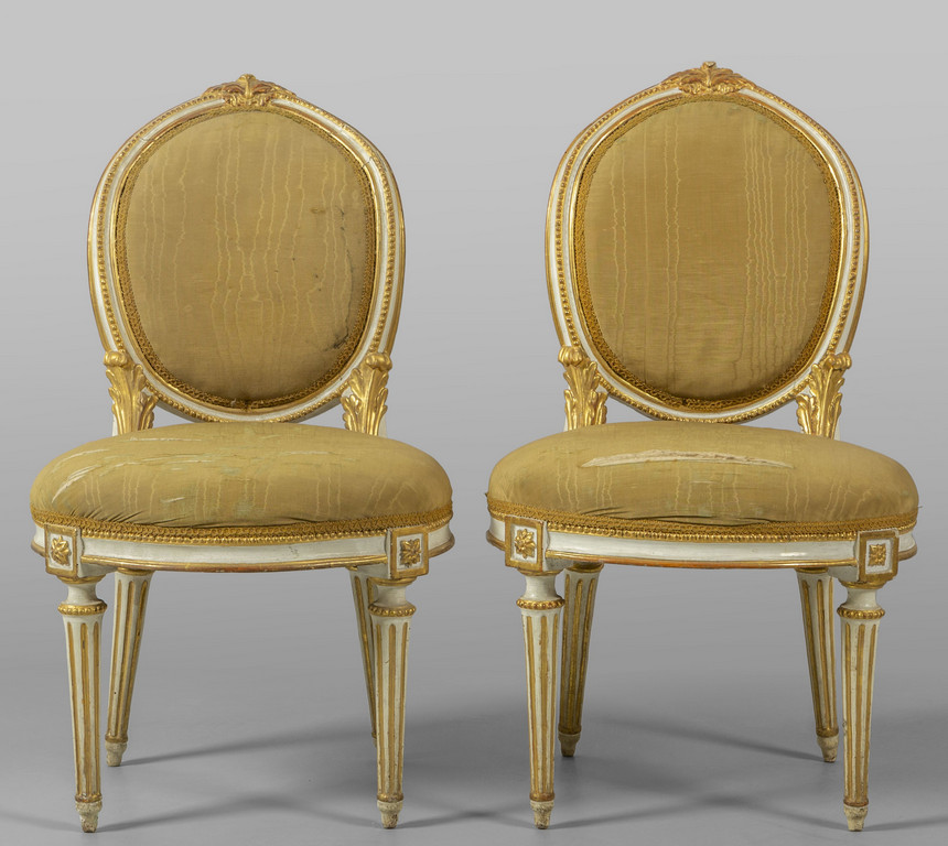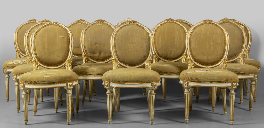 Dodici sedie Luigi XVI in legno intaglito laccato e dorato Napoli II metà sec.XVIII