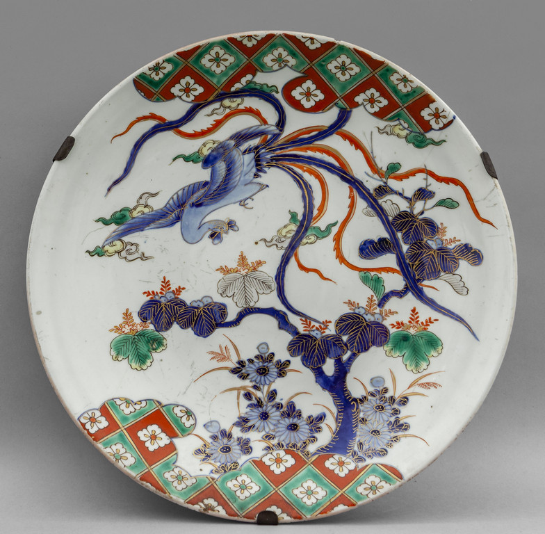 Piatto in porcellana decorato con fenice lumeggiato in oro a freddo Cina sec.XIX