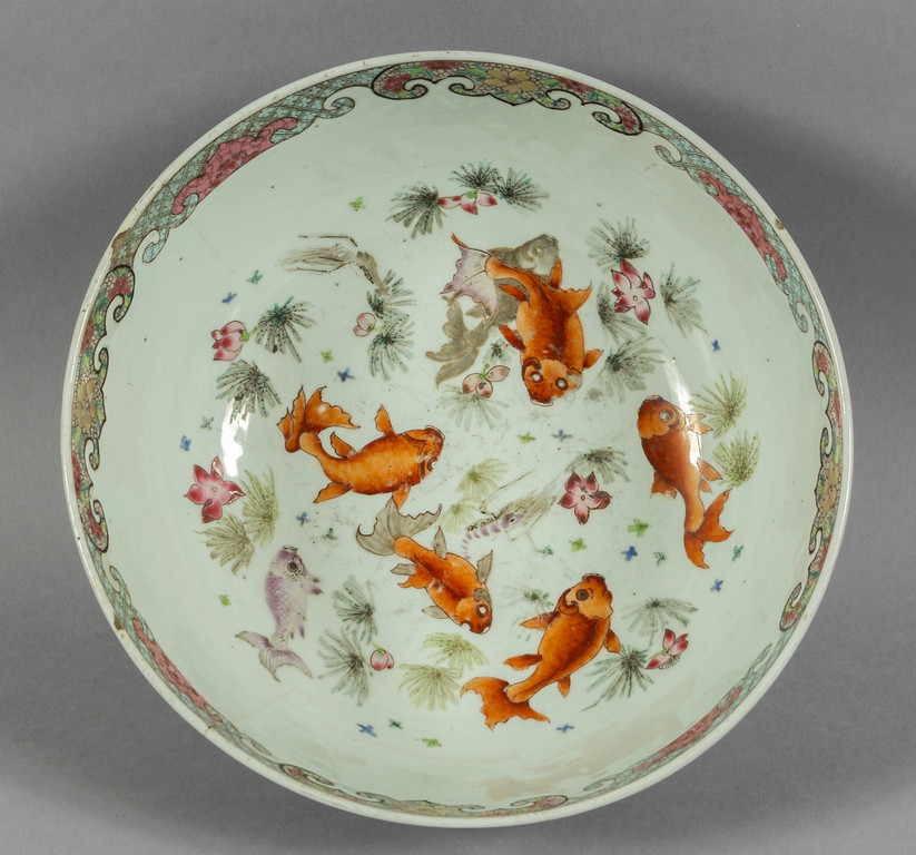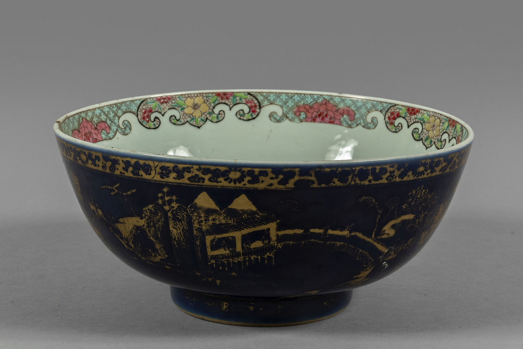 Coppa im porcellana blu poudré decorata con carpe Cina sec.XVIII/XIX