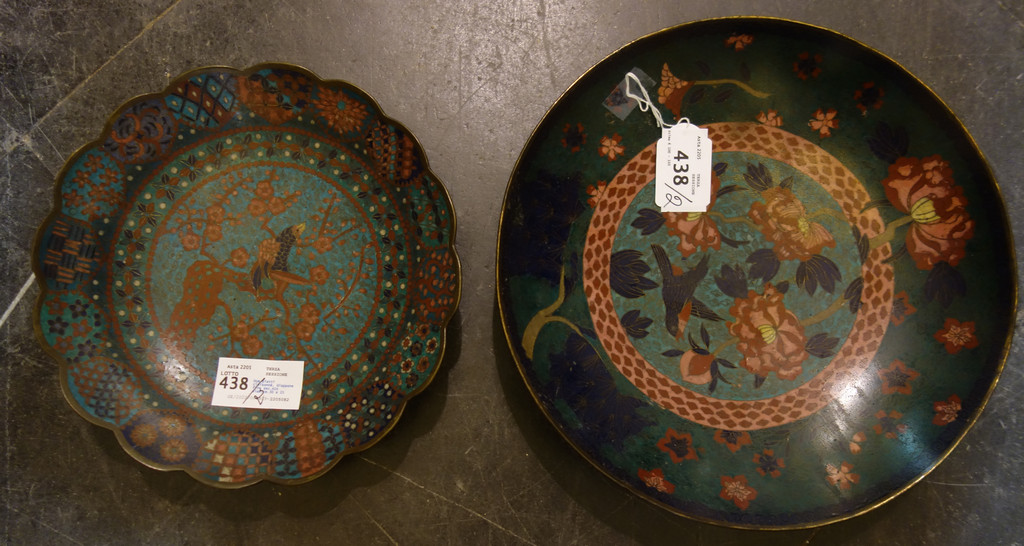 Due piatti cloisonnè Giappone fine sec.XIX