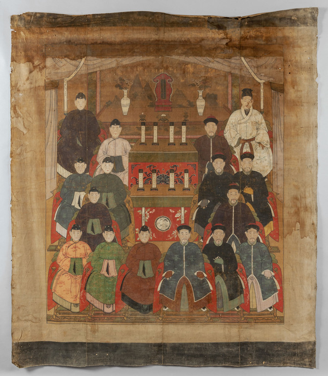 Scena d'interno con molte figure tempera su tela Cina Dinastia Qing