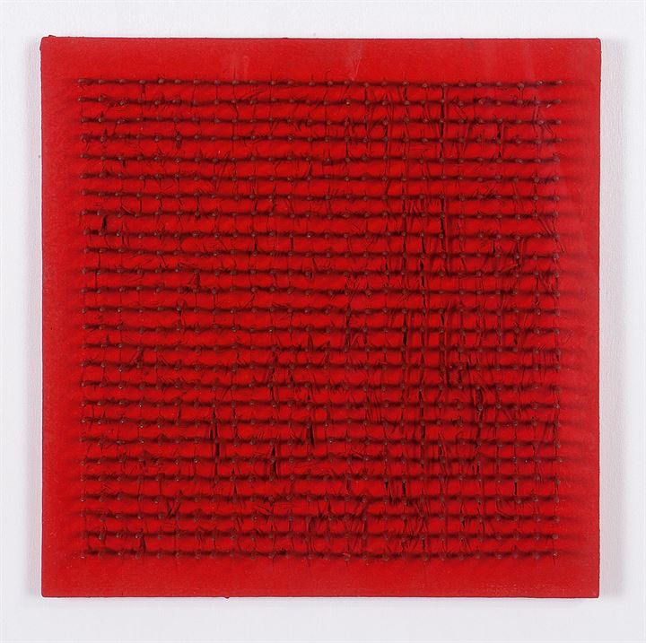 30x30 acrilico rosso e chiodi su tavola