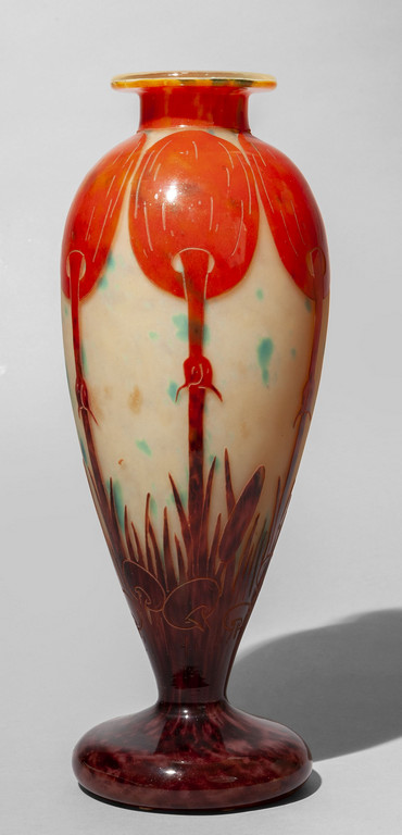Le Verre Francais per Charles Schneider vaso cammeo decorato con funghi Francia 1925 ca.