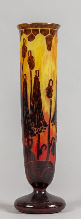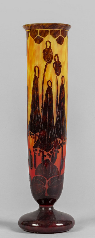 Le Verre Francais vaso cammeo decorato con campanule Francia 1925 ca.
