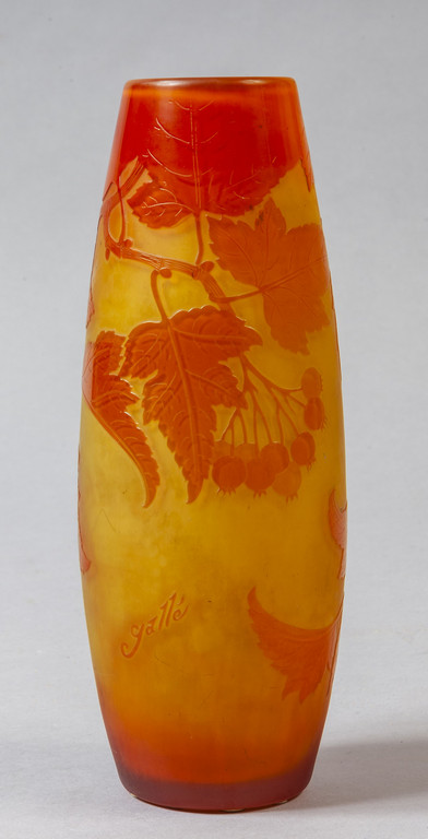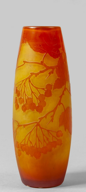 Gallè vaso in vetro decorato all'acido nei toni dell'arancione Francia inizi sec.XX