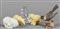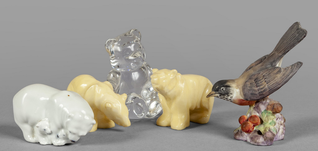 Cinque animaletti in materiali diveri (quattro orsi e un cardellino)