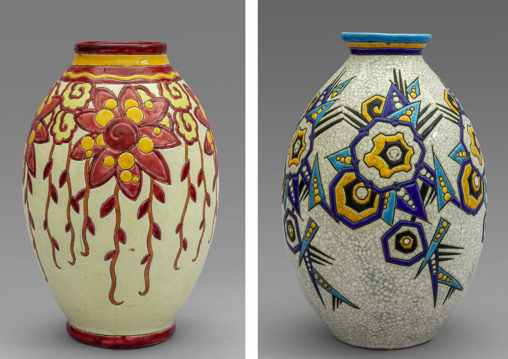 Due vasi in ceramica marcati alla base Keramis-Belgio