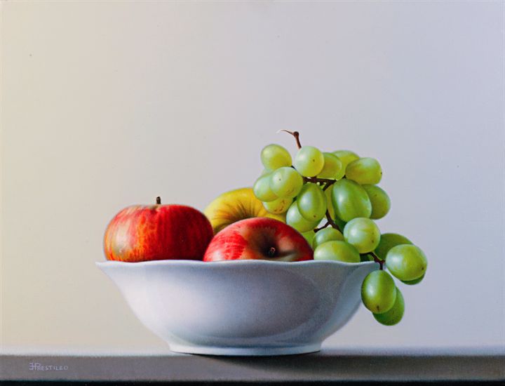 PRESTILEO ENZO Massa Lubrense (NA) 1957 "Uva e mele" 1999 38x50 olio su tela...
