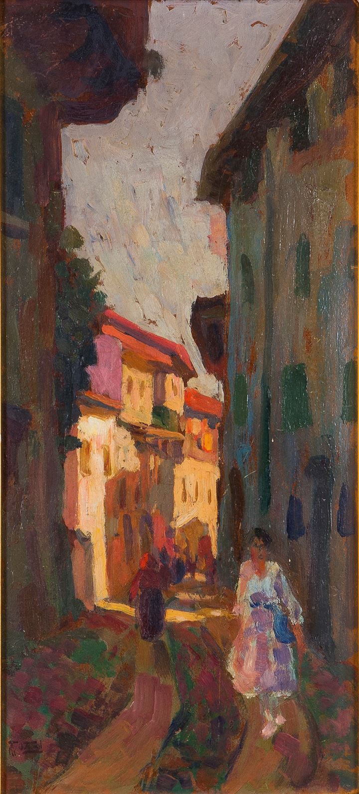 TOZZI MARIO Fossombrone (PS) 1895 - 1979 F "Strada di Suna" 1912 42x19,5 olio...