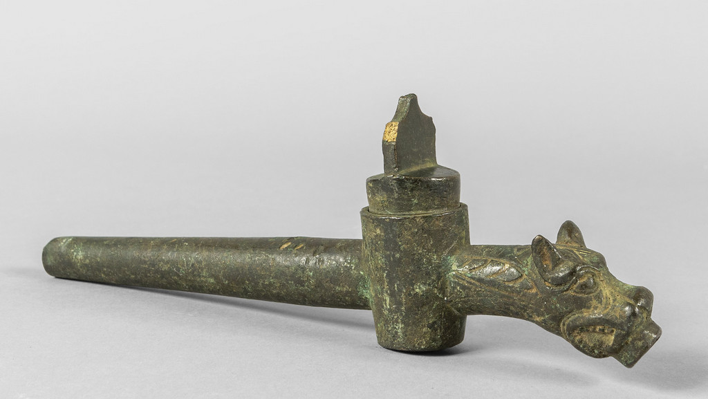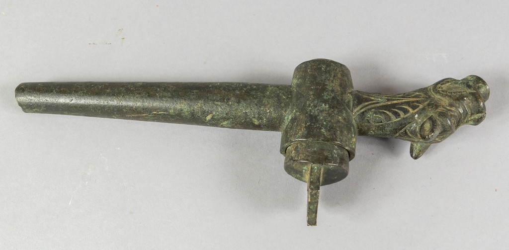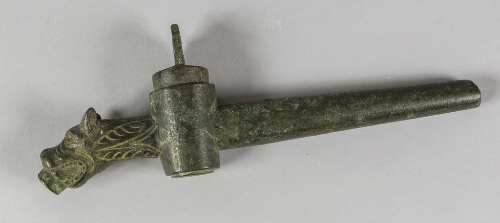 Rubinetto in bronzo a patina scura con terminale con testa di lupo sec.XVI