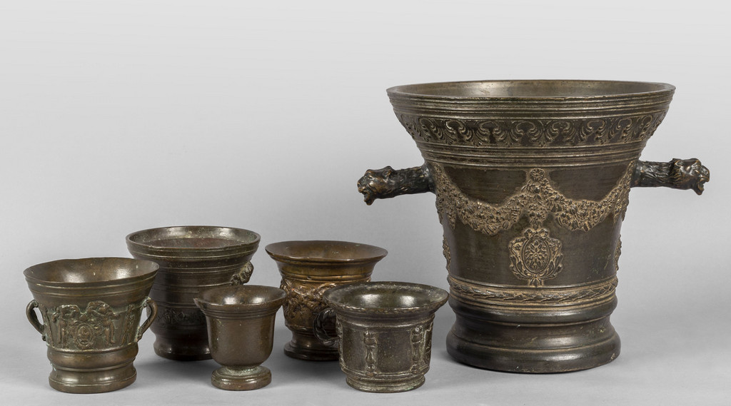 Previous Lot 0983 Next Aste Boetto - Via Mura dello Zerbino 10R, 16122 Genova ASTA DI ANTIQUARIATO E ARTE ORIENTALE Asta di Antiquariato e Arte Orientale Wednesday 22 June 2022 hours 10:30 (UTC +01:00) OGGETTISTICA Sei mortai in bronzo di epoche e misure diverse
