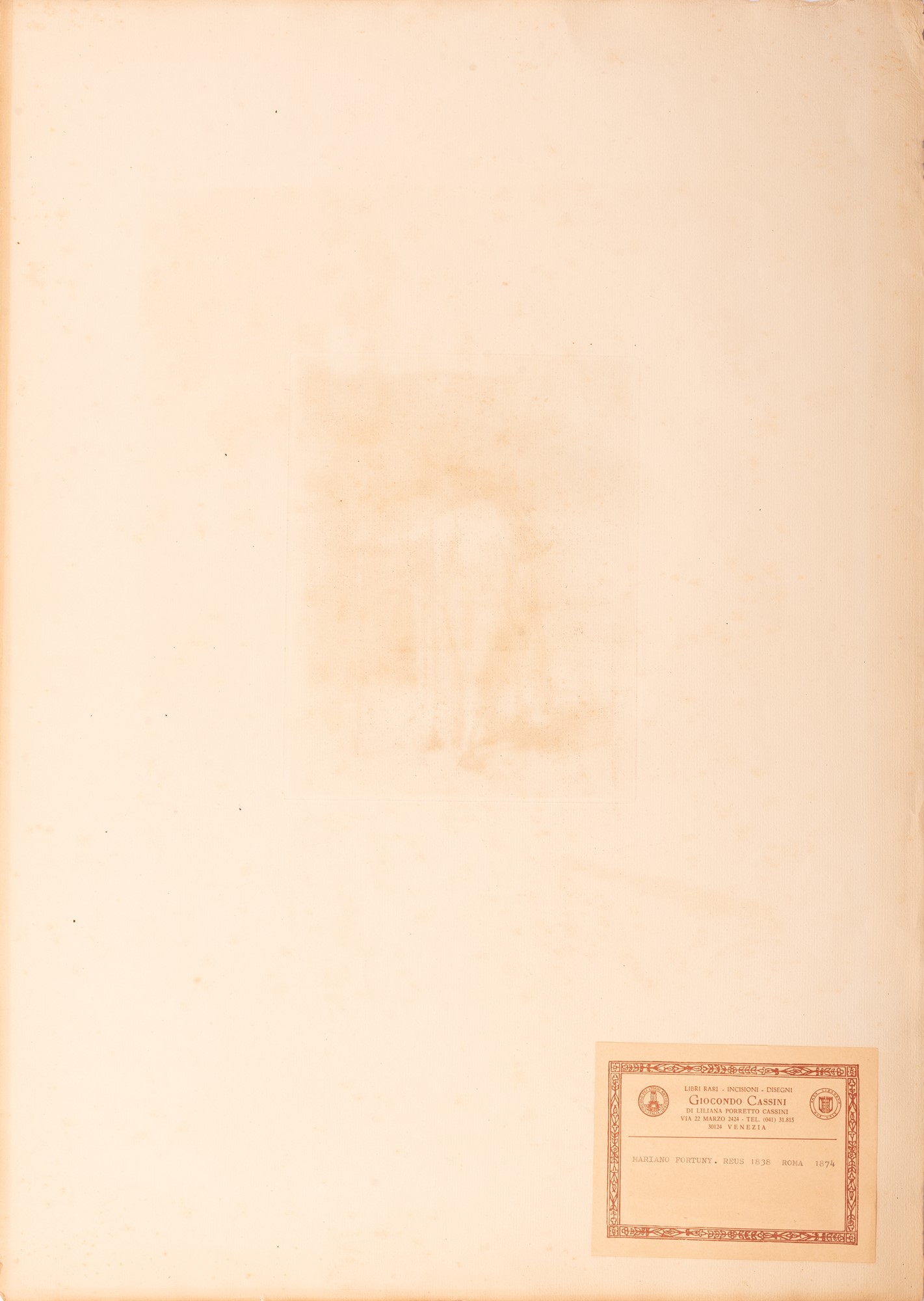 Mariano Fortuny (Granada, 1871 - Venezia, 1949) Maestro di Cerimonie Acquaforte cm 21x17 Pittore e incisore spagnolo, collezionista e antiquario. Di umili origini restò presto orfano ma ebbe i primi insegnamenti dal nonno modellatore di figure in terracotta. Tentò la fortuna trasferendosi nel 1853 presso l'Escuela de Bellas Artes di Barcellona e grazie alle sue doti artistiche vinse il premio Roma nel 1857 che gli permise di proseguire gli studi a Roma. Qui giunse nel 1858 e iniziò a frequentare gli artisti spagnoli, subì l’influsso delle opere di Domenico Morelli e strinse amicizia con il pittore Attilio Simonetti (1843–1925) che lo portò alla scoperta degli artisti napoletani. Simonetti divenne suo allievo e divise con lui lo studio romano. Con lo scoppiare della guerra ispano-marocchina, Fortuny fu chiamato in Marocco per rappresentare e immortalare i momenti più salienti del combattimento tra il 1860 e il 1861. Durante tale soggiorno Fortuny prese ispirazione per molti suoi dipinti sia raffigurando con occhio documentario scorci o tipi pittoreschi sia rielaborando poi in studio in chiave raffinata e decadente certi altri soggetti più esotici e aderenti al gusto orientalista allora di gran moda. Nel 1862 tornò nuovamente in Italia, viaggiando tra Firenze e Napoli dove incontrò l'amico pittore Domenico Morelli, per poi tornare a Roma e aprire un nuovo studio in Via della Purificazione. Artista perennemente in viaggio fra l’Italia, la Spagna e Londra e Parigi dove divenne sodale dei migliori artisti del suo tempo, fu apprezzato e ricercato a livello internazionale per il suo gusto chiaro e cosmopolita. Sposò nel 1867 Cecilia de Madrazo y Garreta figlia del Direttore del Prado e nipote di un noto pittore spagnolo. Fortuny, il più internazionale e cosmopolita dei pittori spagnoli dell’Ottocento, si è dedicato all’incisione proponendo originali soggetti di genere spagnoleggiante o orientalista. La sua opera tradisce la profonda conoscenza dei maestri del passato quali Goya e Rembrandt. Fortuny impiega un segno minuto che si contraddistingue, nella maggior parte delle lastre, per la ricerca di violenti effetti di luce su ambienti in ombra. Le lastre, come la vita stessa dell’autore, sono state soggette a continui rimaneggiamenti oggi ben ricostruiti nel catalogo ragionato basato sullo studio degli esemplari conservati nei musei pubblici. Si possono perciò oggi ben identificare le varie tirature; le prove di lavoro, le tirature coeve e quelle postume fino al 1916 nonché le varie carte impiegate dall’autore.