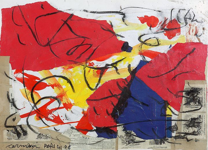 CARMASSI ARTURO Lucca 1925 "Senza titolo" Parigi 1978 50x70 collage e fusain...