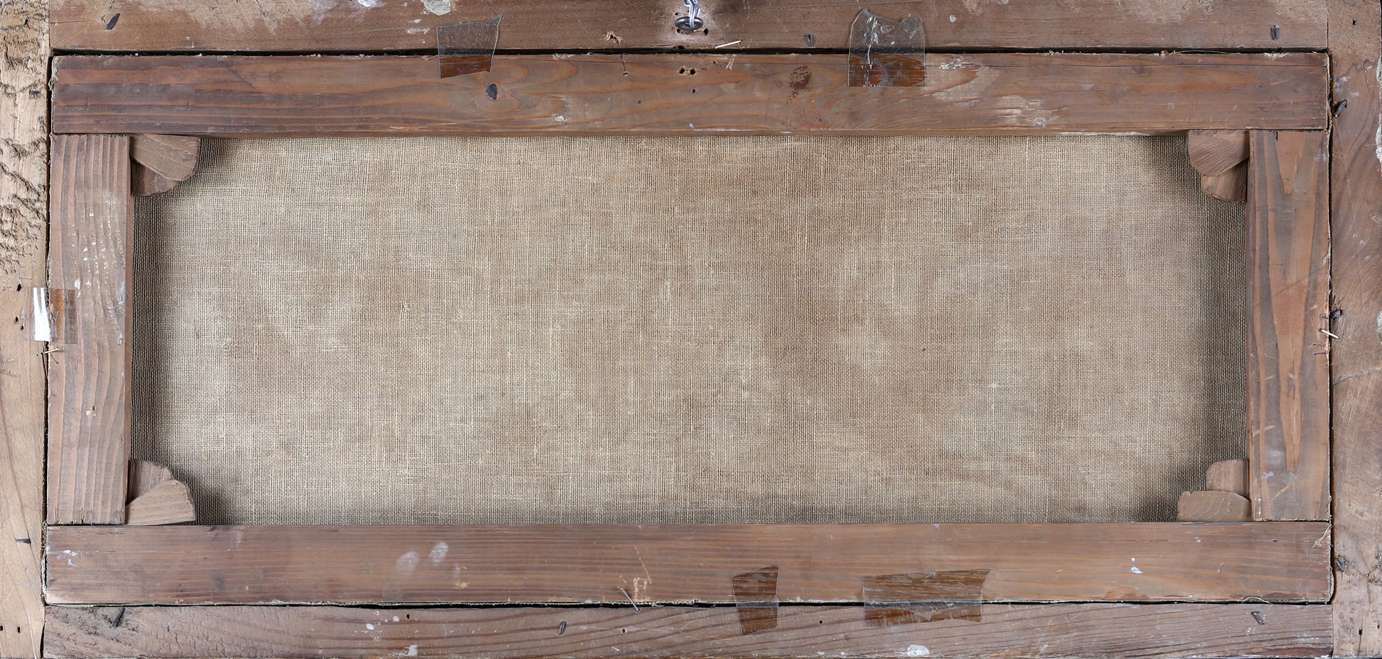 Matteo Ghidoni detto Matteo dei Pitocchi (Firenze , 1626 - Padova, 1700) Veduta con uomini a lavoro con il trasporto di merce olio su tela cm 33x77 - in cornice: 42x87