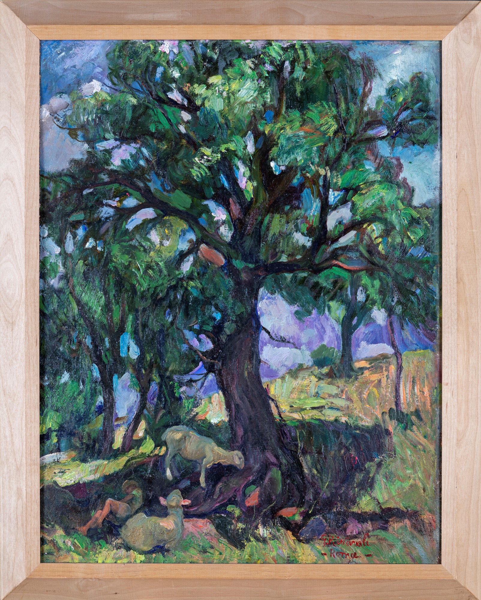Giuseppe Rivaroli (Cremona, 1885 - Roma, 1943) Scena campestre Olio su tela applicata su cartone cm 57x44