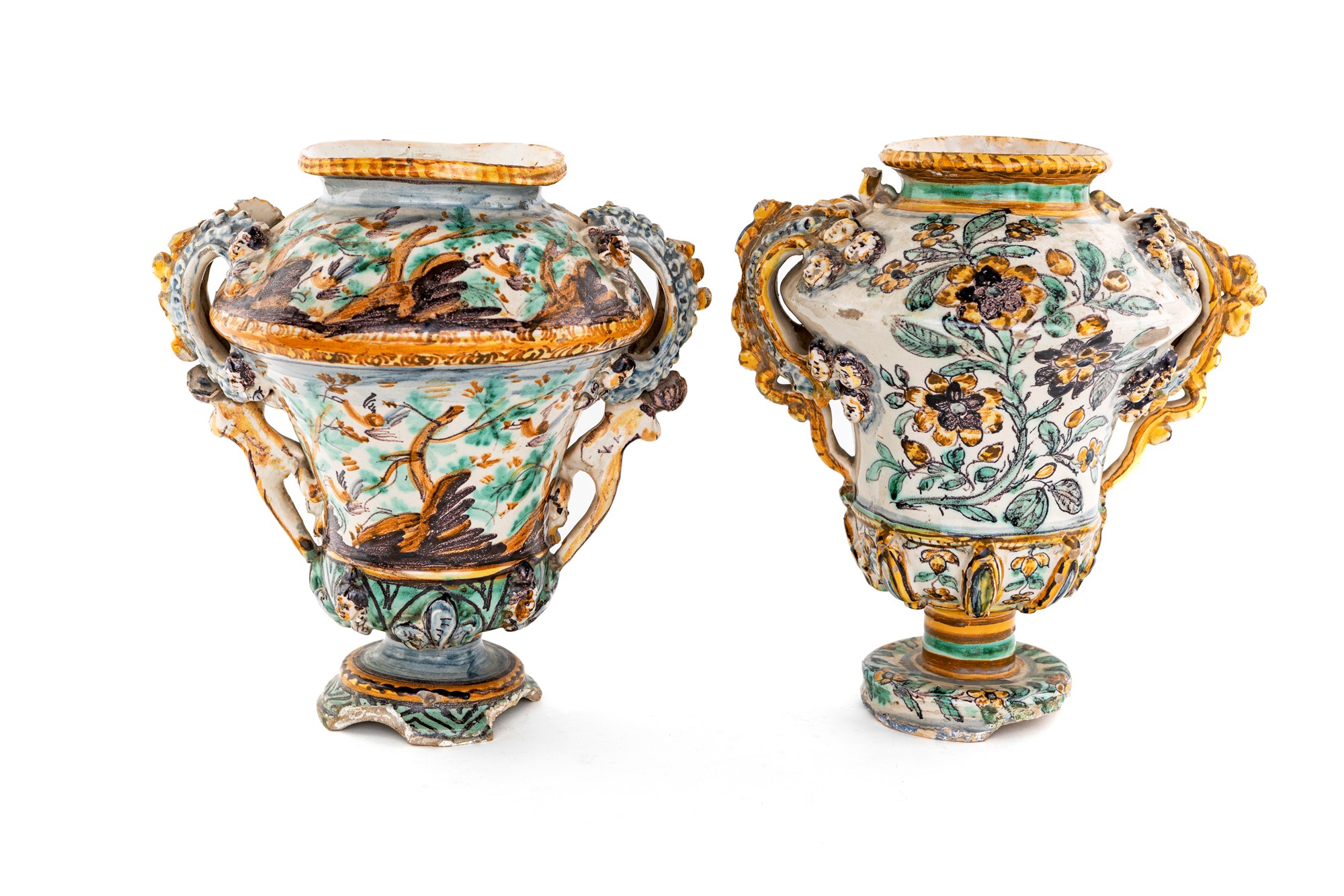 Due antichi vasi in maiolica, Italia meridionale altezza cm 30