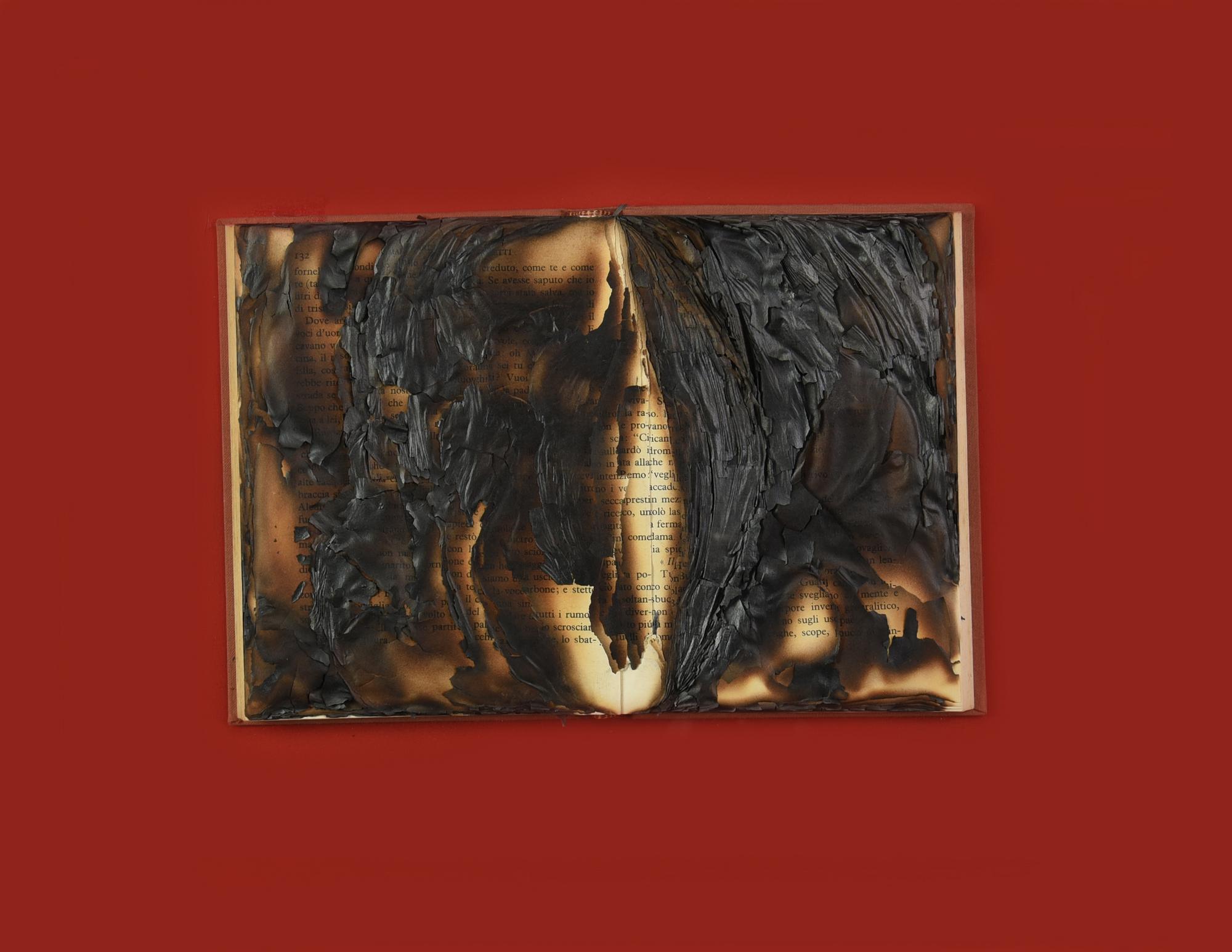 libro bruciato su tavola, cm 50x60