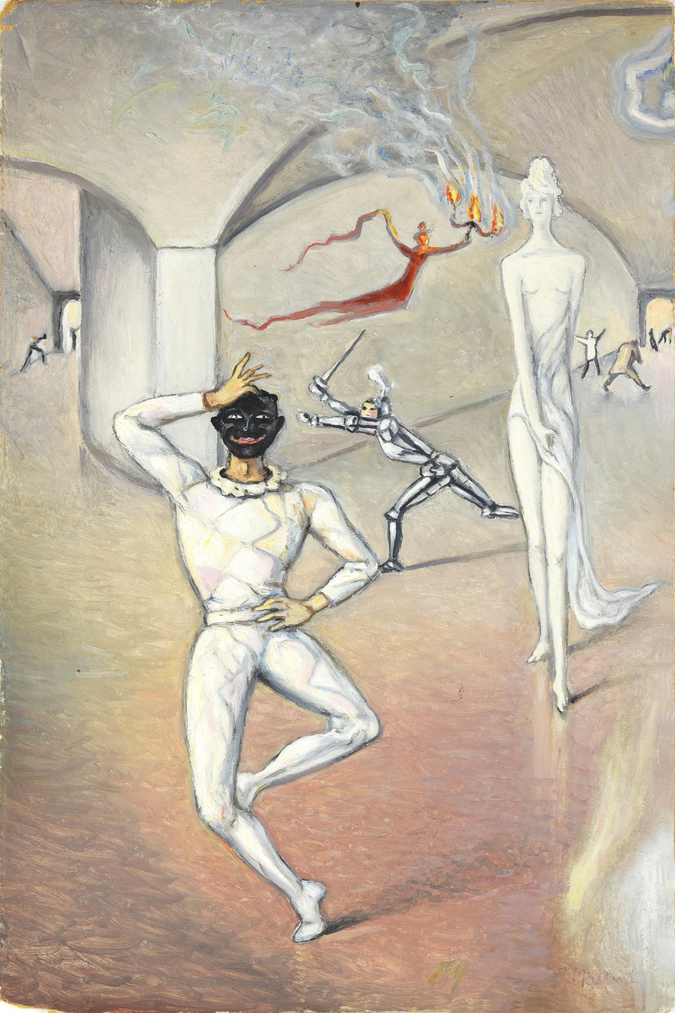 Alberto Martini (1876 - 1954) SUL PALCOSCENICO olio su cartone, cm 51x33...