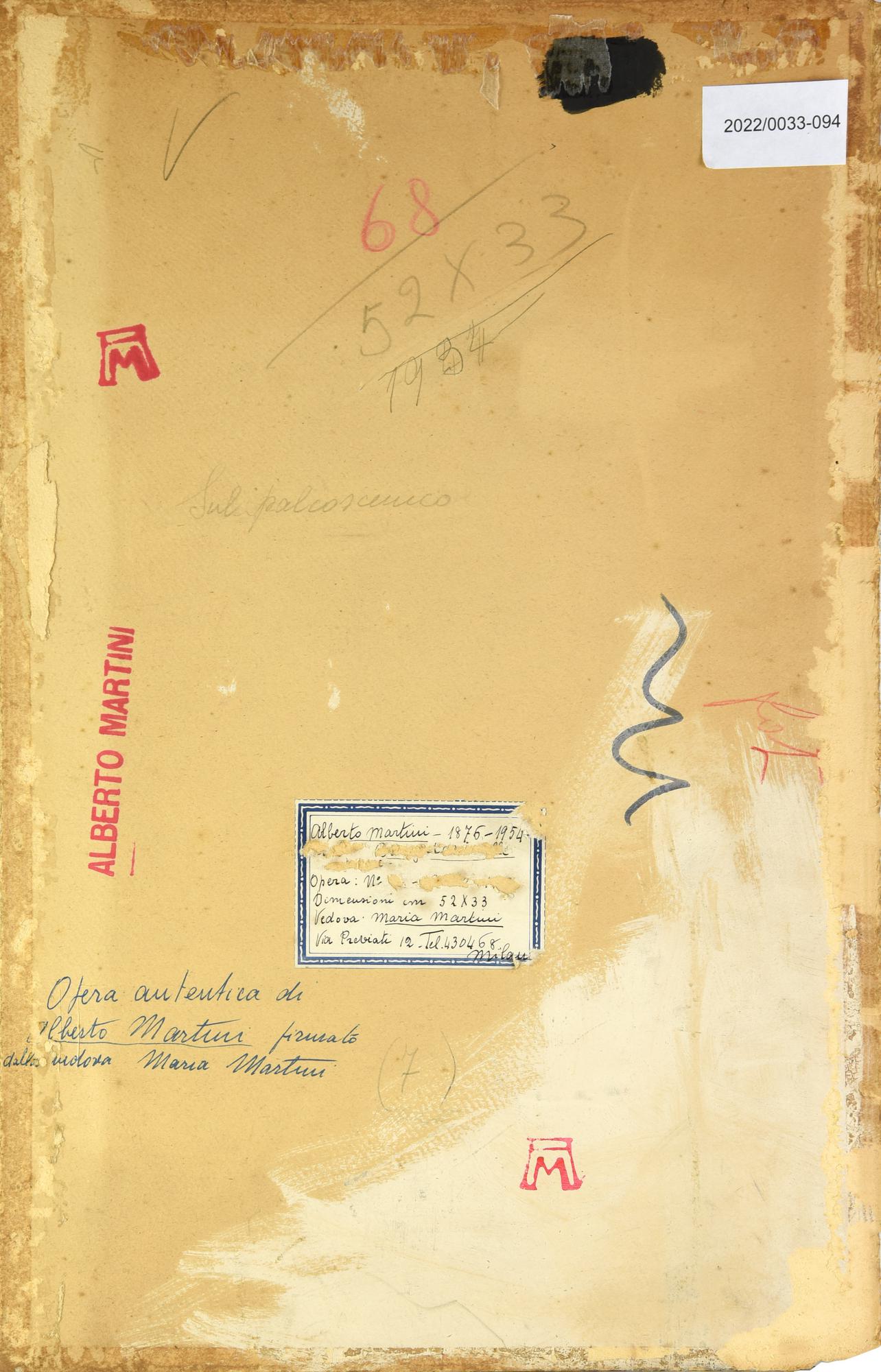 sul retro: titolo, data, timbro dell'artista e autenticata dalla vedova Maria Martini