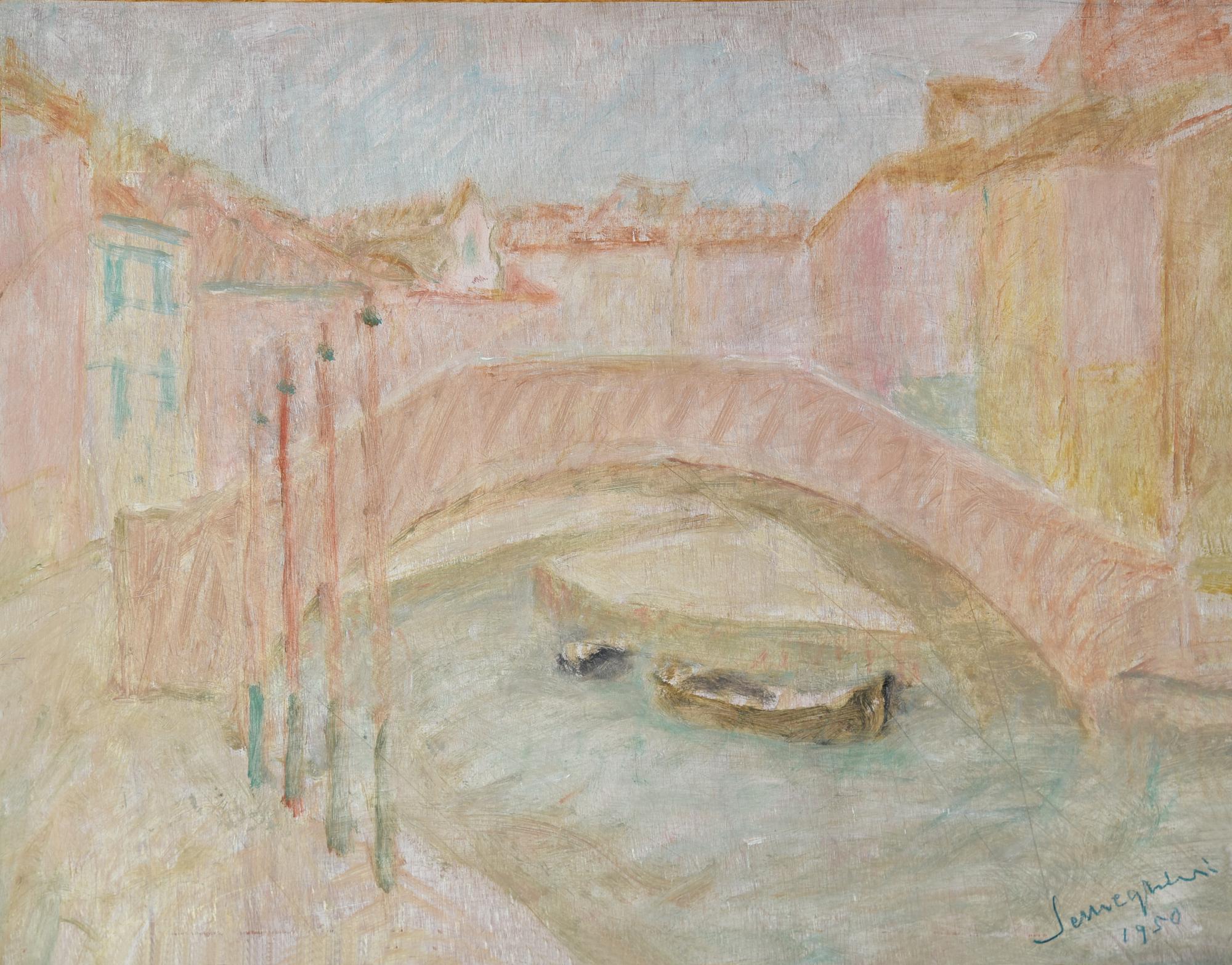 Pio Semeghini (1878 - 1964) CANALE A BURANO olio su tavola, cm 26x31,5 firma...
