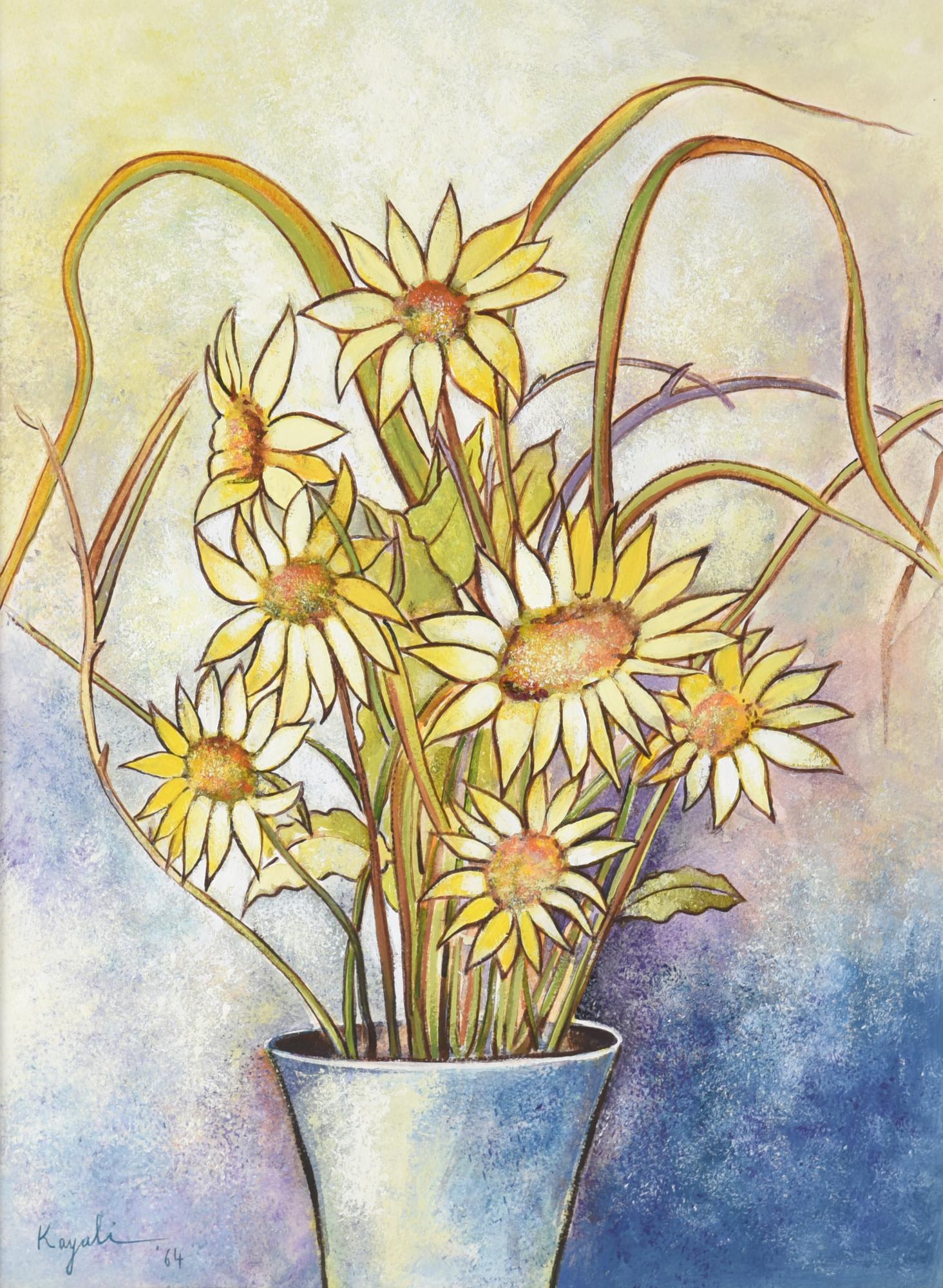 Louay Kayali (1934 - 1978) VASO DI FIORI tecnica mista su carta, cm 45x33...