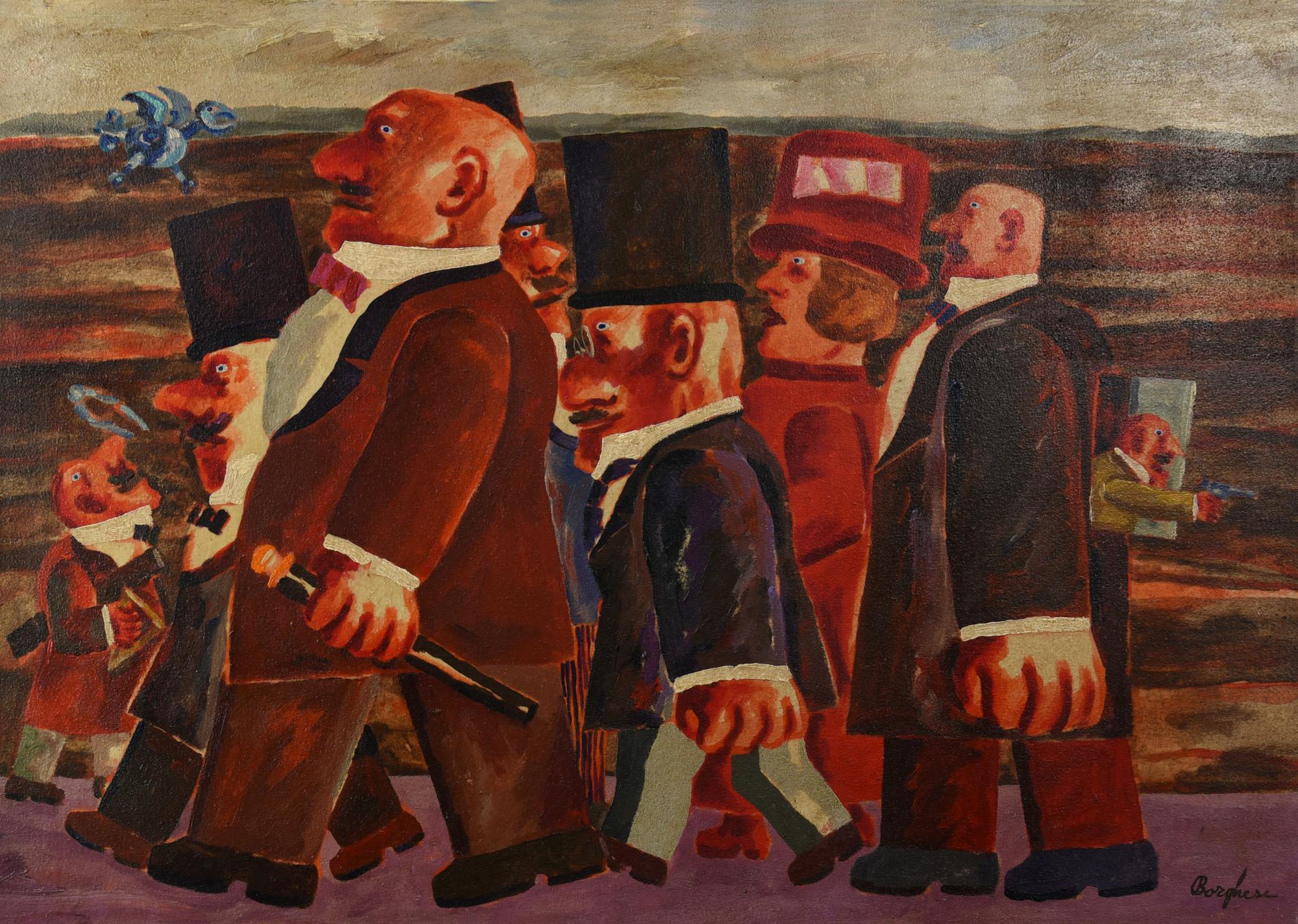 Franz Borghese (1941 - 2005) FIGURE olio su tela, cm 50x70 firma sul retro:...