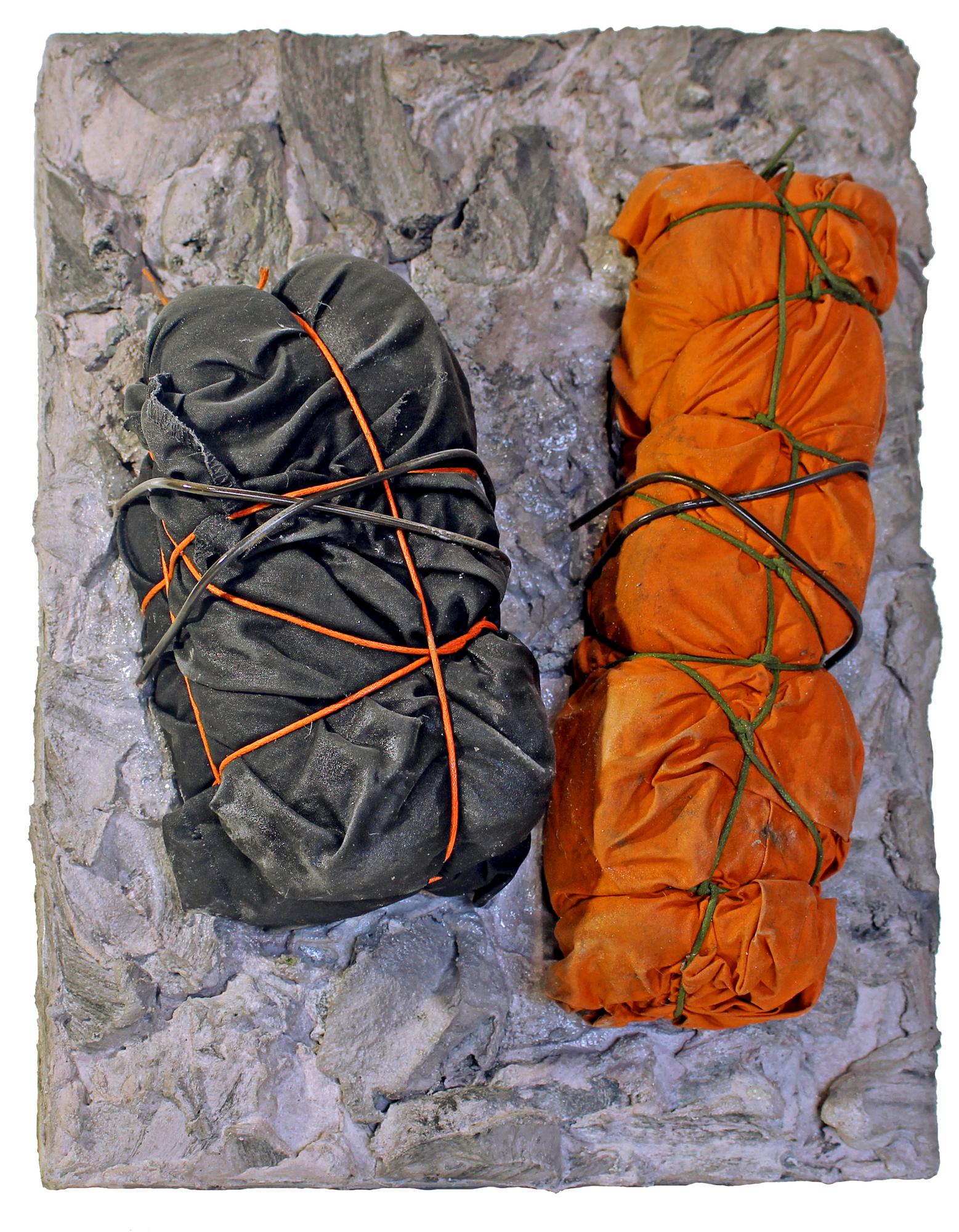 composizione polimaterica e tecnica mista, cm 40x30x12