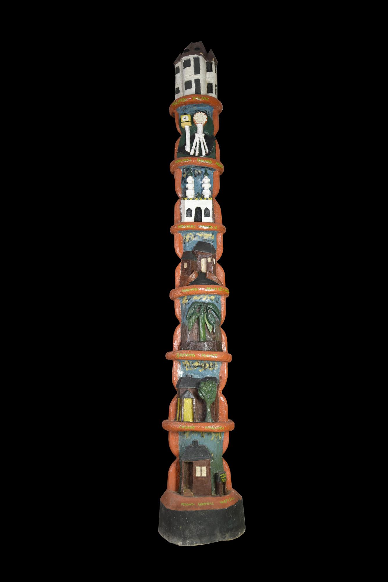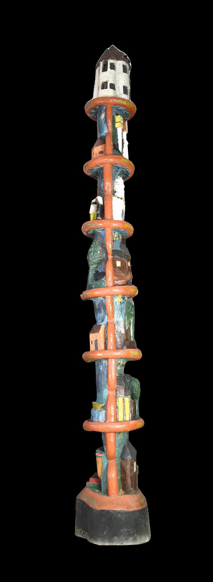 Lot 225 | Cheff Mwai (1931) MALINDI TOTEM scultura in legno dipinto, cm 265x43x38...
