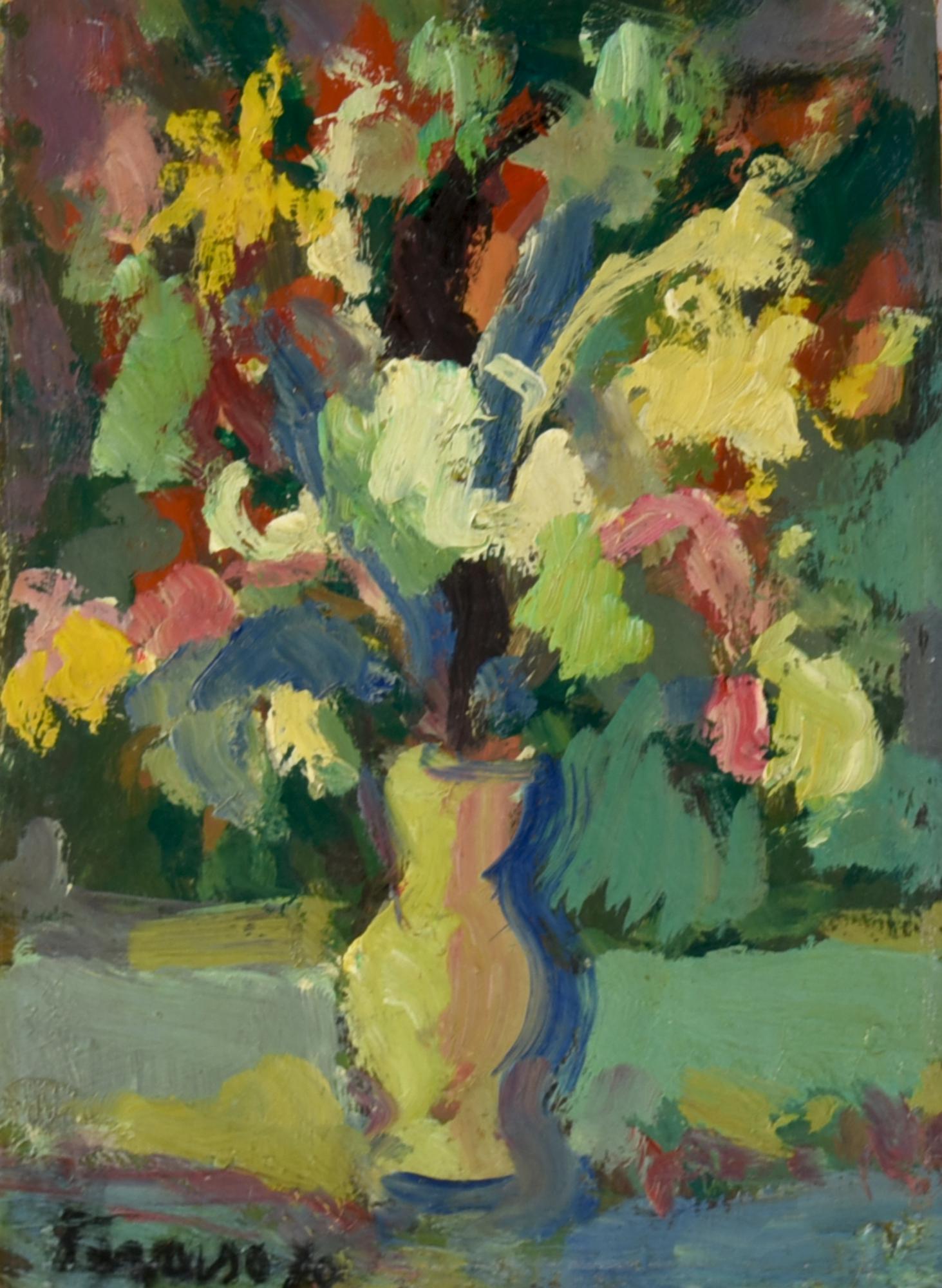 Saverio Terruso (1939 - 2003) VASO DI FIORI olio su faesite, cm 24,5x17,5...
