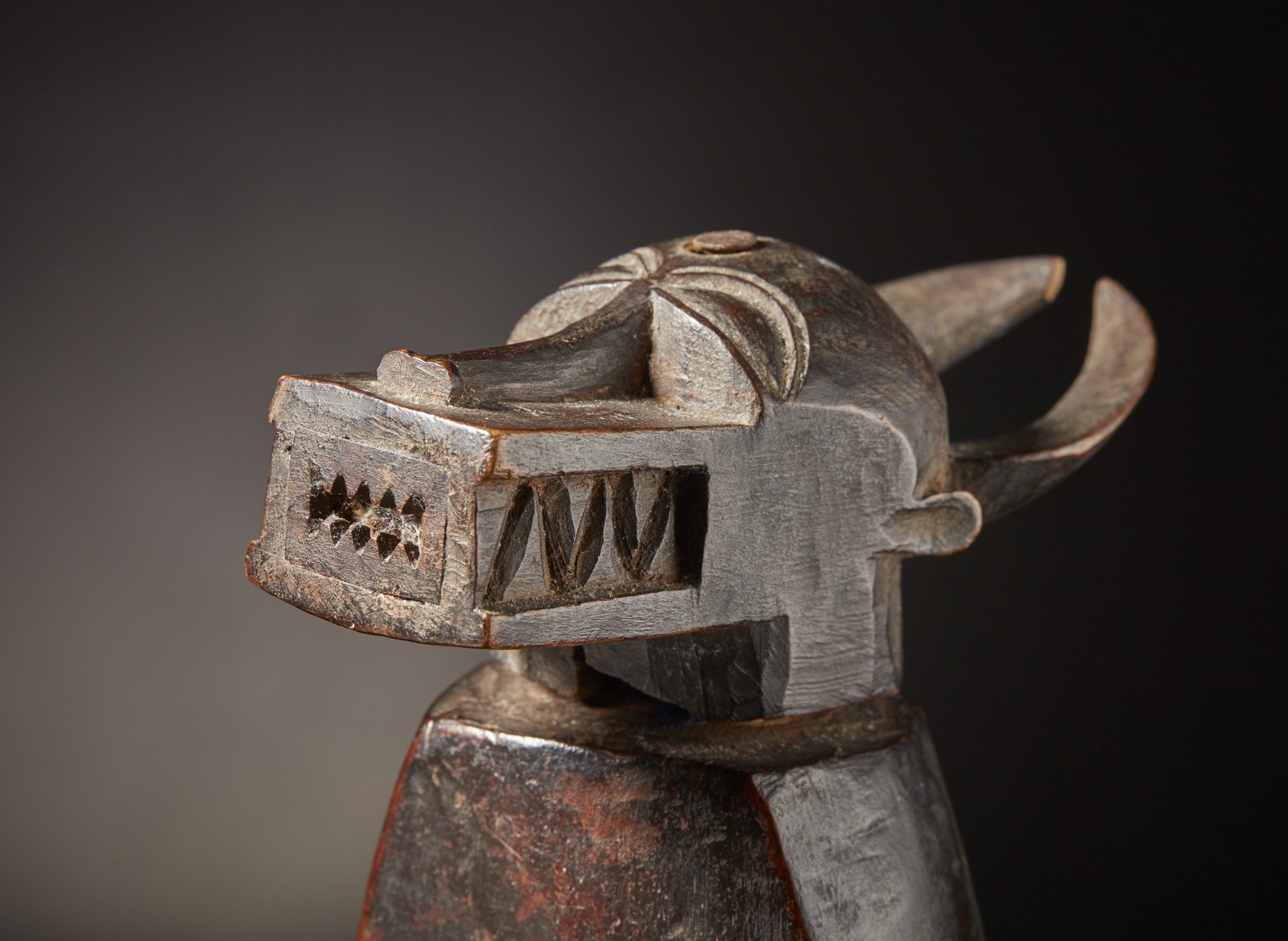 Bella patina scura e segni d'uso.
