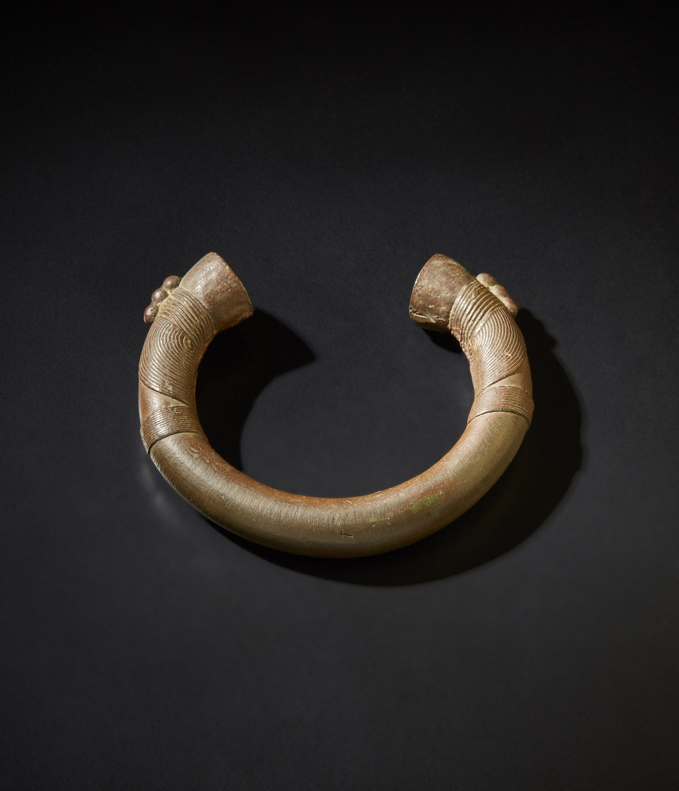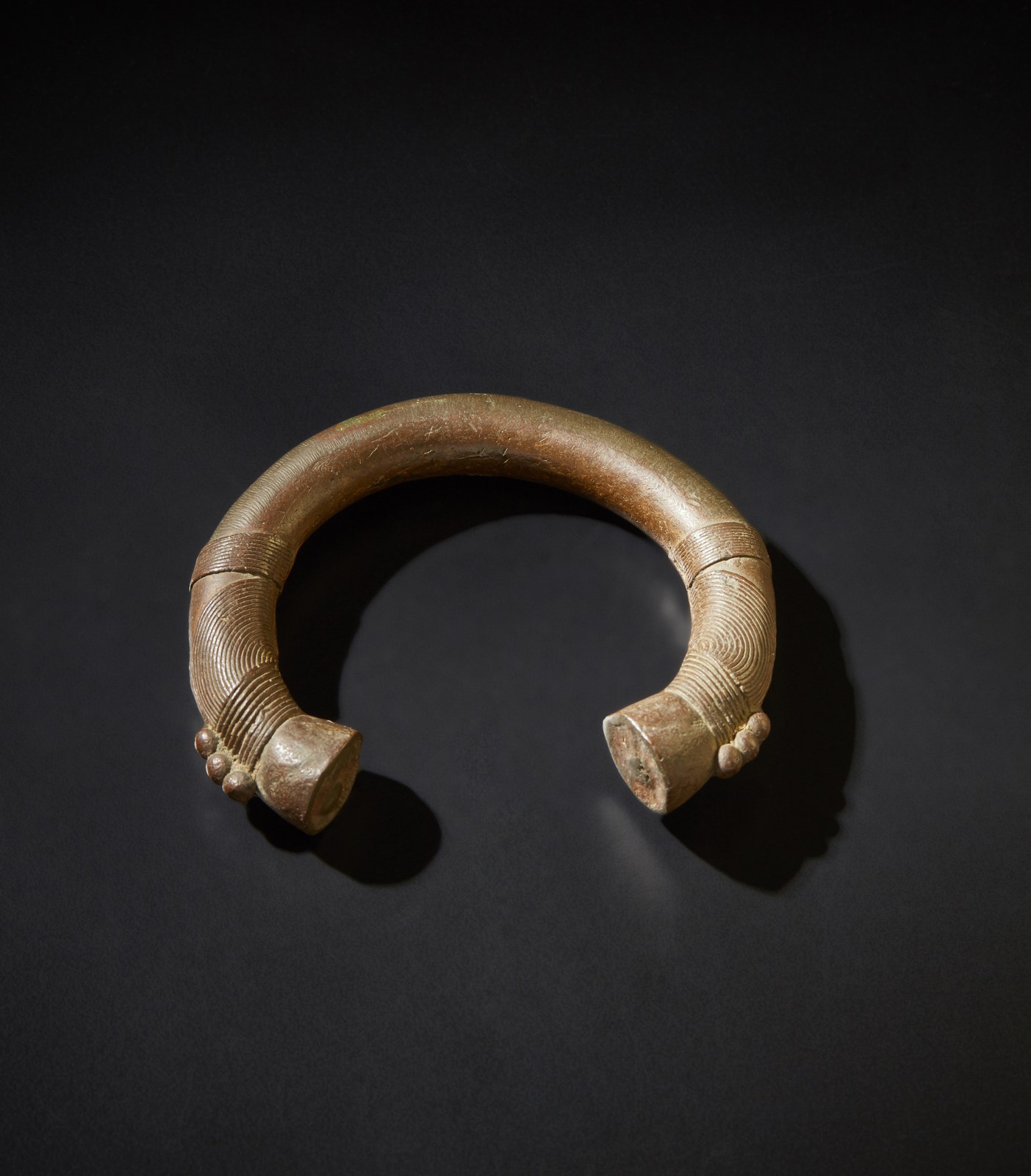 Arte africana - Bracciale moneta. Lega di ottone. Segni d'uso.