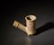 Segni d'uso. . Cm 13,00 x 19,00 x 6,00. Difficile stabilire la zona di provenienza di questo bel fornello da pipa realizzato in ferro ingabbiato da lega di ottone. I tre piedini alla base danno l'idea della cura prestata alla realizzazione di quest'oggetto, che appoggiato avrebbe tenuto lontano il calore della brace dalla superfice di contatto.
