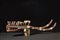 In questo esemplare è presente sulla fronte anche un piccolo camaleonte che, con ogni probabilità, veniva utilizzato come maniglia per trasportare la maschera quando non danzava ed era a riposo.