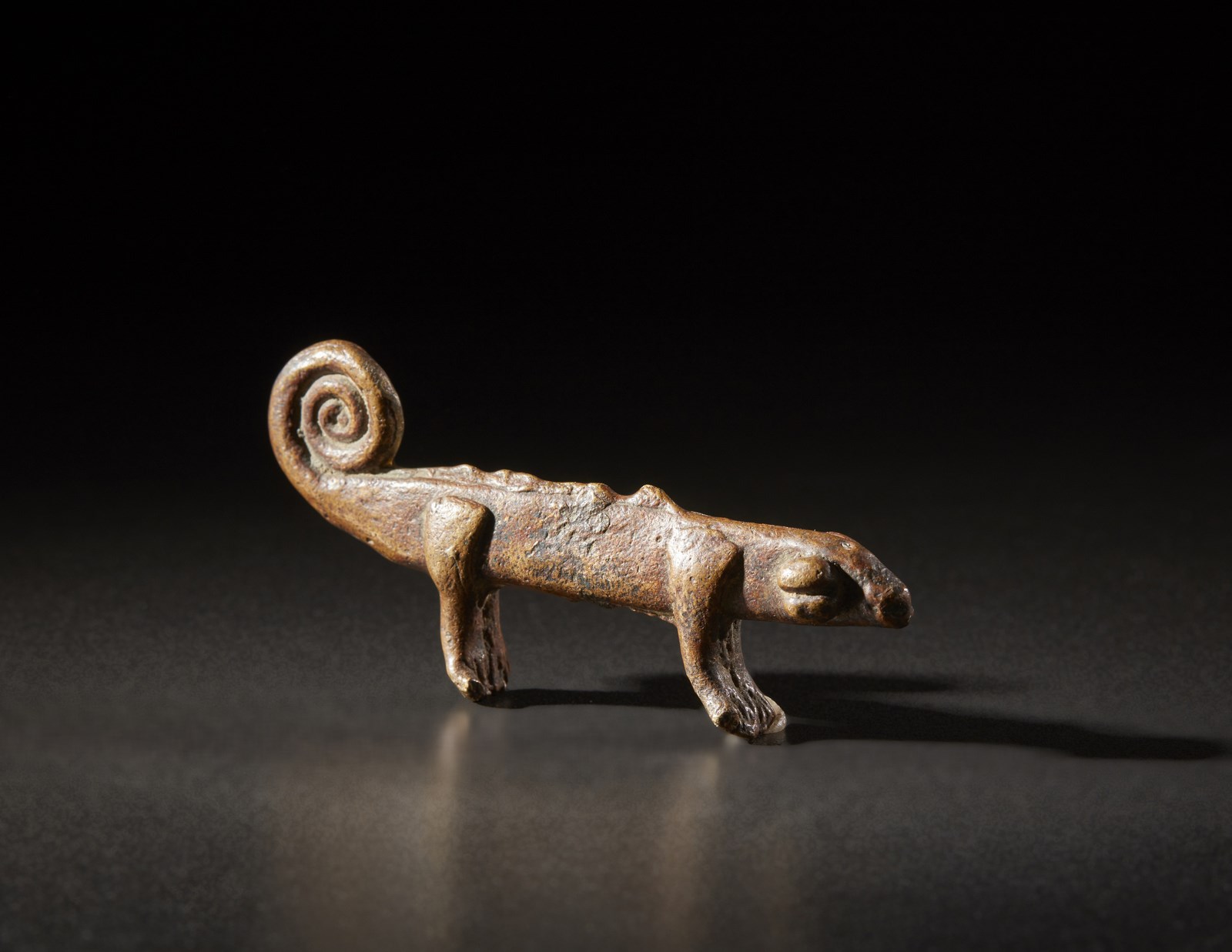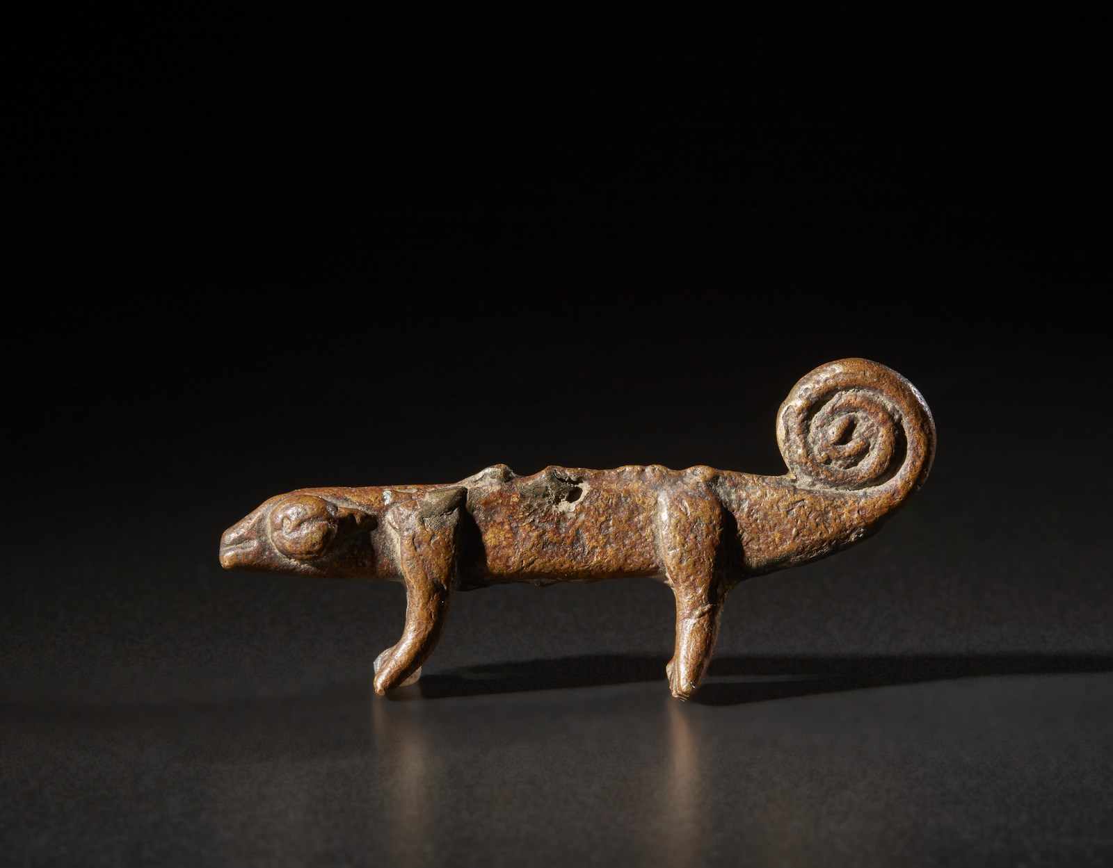Lobi - Burkina Faso - Piccola scultura a forma di camaleonte. Bronzo. Segni d'uso.