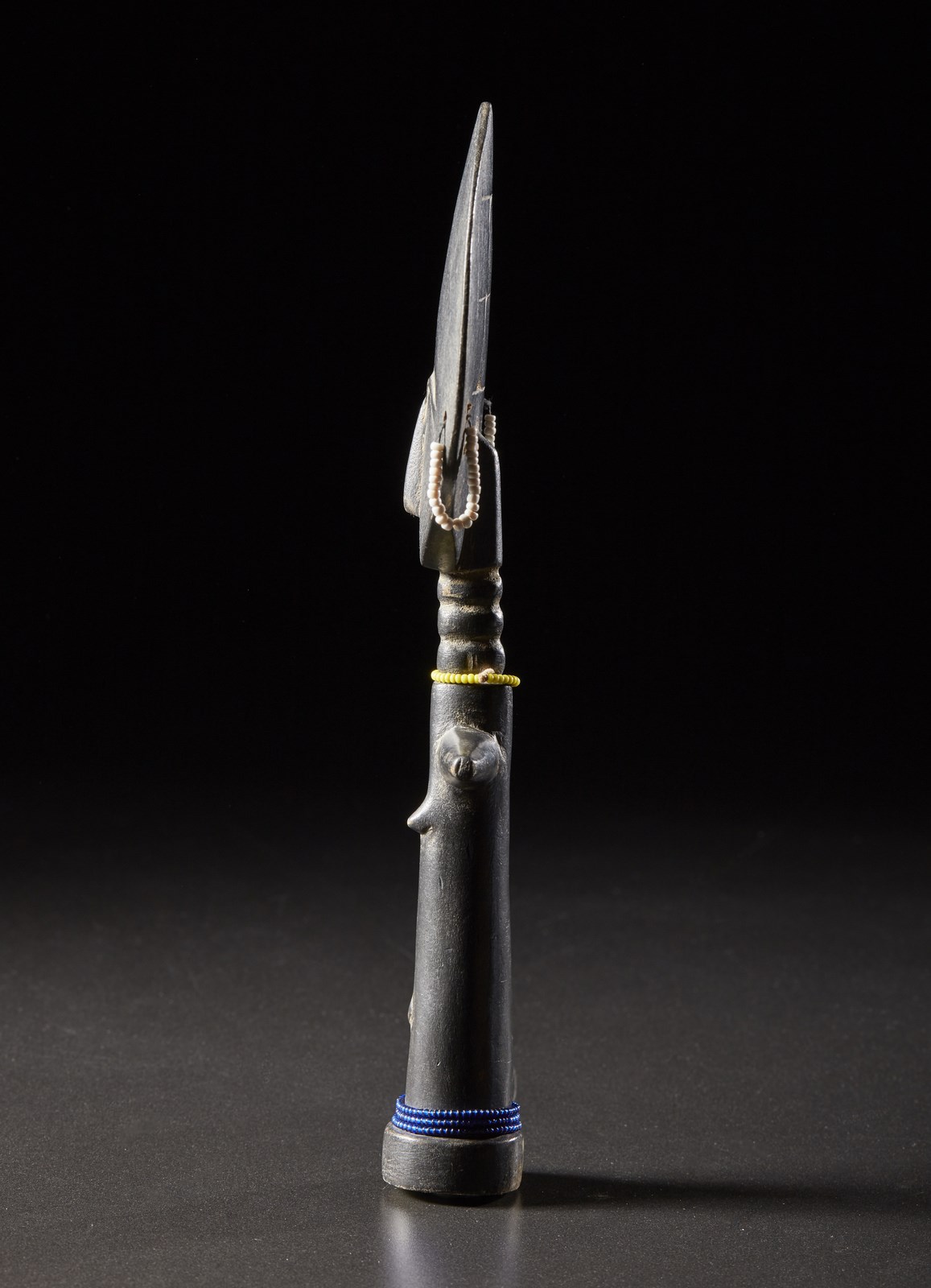 Ashanti - Ghana - Bambola di fertilità o Akua' ba. Legno duro a patina scura, perline. Segni d'uso.