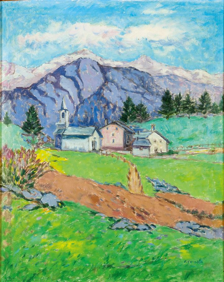 CHIARA FEDERICO Torino 1894 - 1980 "Brusson" anni '60 57x46 olio su masonite...