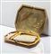 Scatola porta sigarette in oro rosso 14 kt con incassati diamanti e rubini finemente incisa.