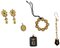 Lotto composto da diversi oggetti in oro giallo bianco e rosso e uno in metallo niellato (portareliqua) di diverso titolo con diamanti taglio rosa e smalti.