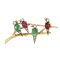 Piccola spilla in oro giallo diamanti e pietre colorate taglio cabochon a raffigurare 4 uccellini su un ramo.
