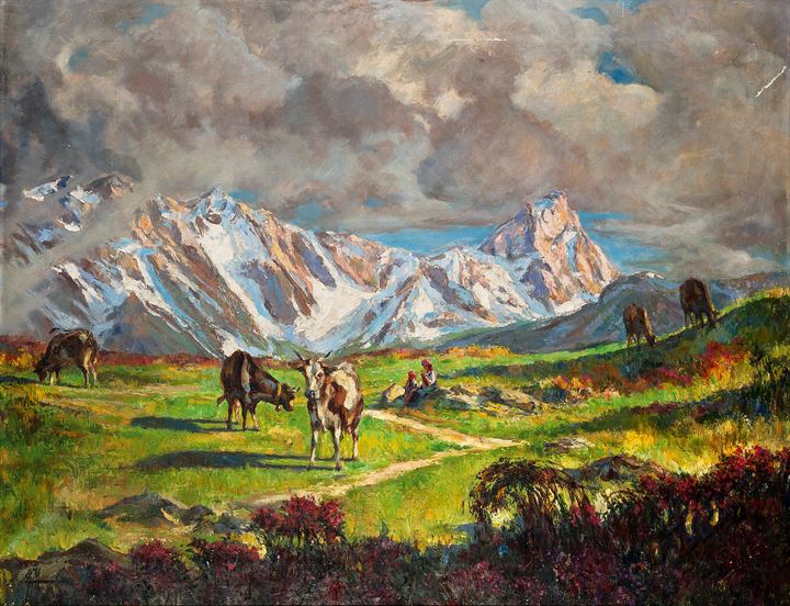 MASUTTI CARLO Torino 1873 - ? "Paesaggio alpino" 70x90 olio su tela Opera...