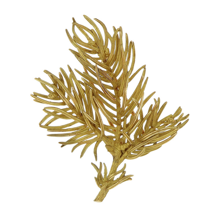 HERMES spilla in oro giallo a rappresentare tralcio di conifera in perfette condizioni marchi di fabbrica e della maison sullo spillone.
