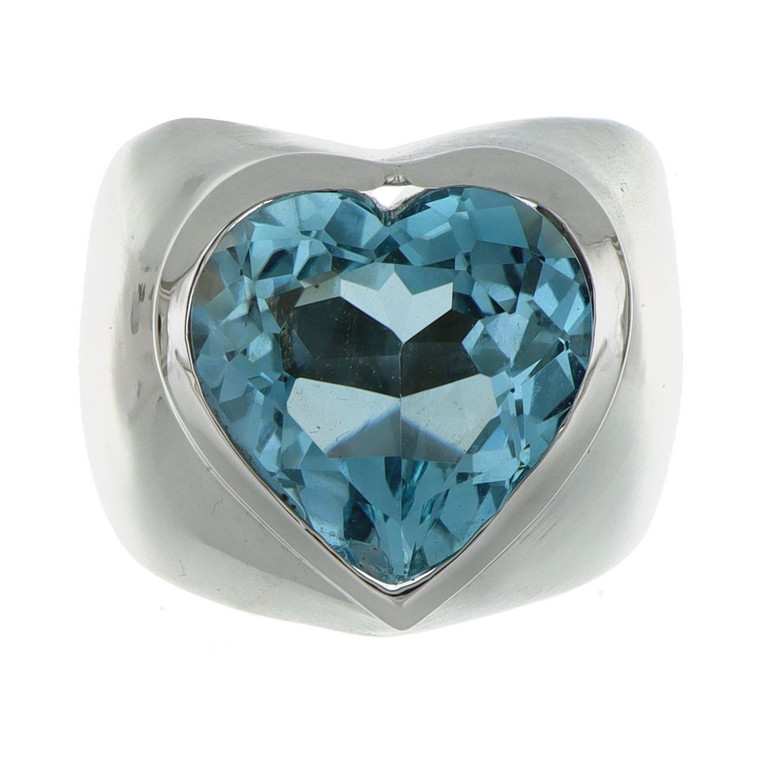 Anello in oro bianco a fascia con al centro grande topazio taglio cuore.