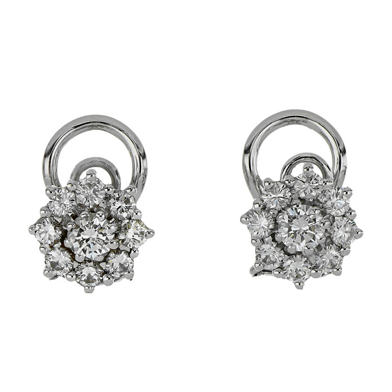 Orecchini a lobo in oro bianco e diamanti per stimati carati 0 70 di foggia a margherita con perno e clips.