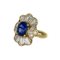 Anello in oro giallo con diamanti taglio taper per carati stimati 2 00 a contorno di uno zaffiro taglio ovale di carati 2 57.