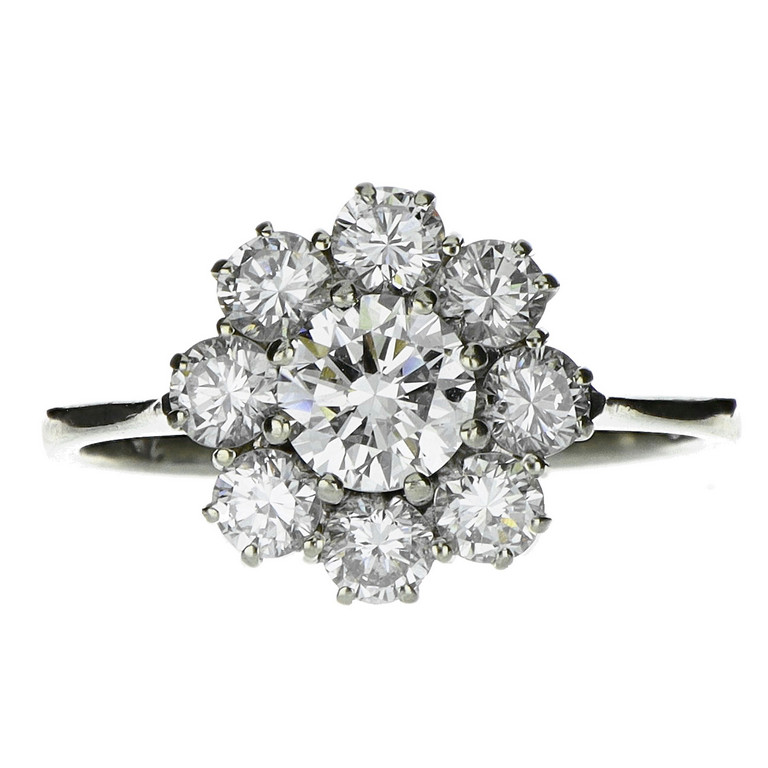 Anello in oro bianco a margherita con 8 diamanti taglio brillante a contorno e uno centrale per stimati carati 0 50 0 80 il contorno.