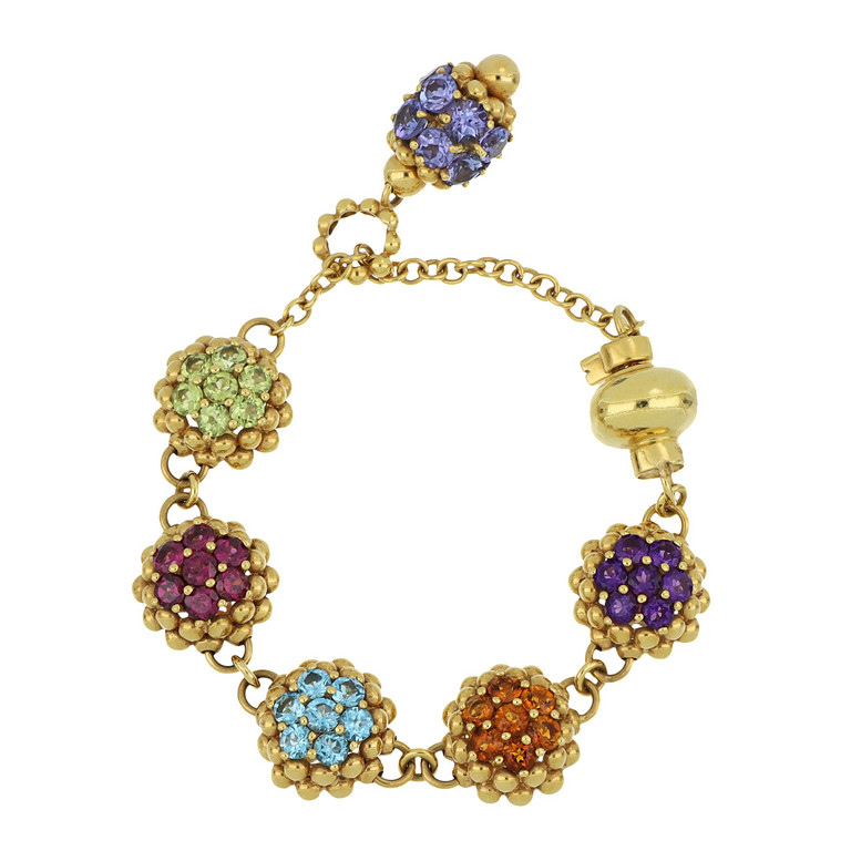PASQUALE BRUNI Bracciale in oro giallo a boule con pietre di colore naturali di vario colore incatenate da maglia rolo' una a ciondolo.