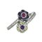 PASQUALE BRUNI anello in oro bianco pietre colorate naturali e diamanti taglio brillante a guisa di contrarie' e motivo floreale.