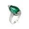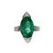 Anello in oro bianco con al centro grande smeraldo taglio navette e due diamanti taglio brillante sul gambo.