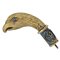 Manico per bastone in argento dorato raffigurante testa di uccello con occhi in zaffiro stellato.