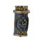 Ornato con smalti guilloche' azzurri festoni con incastonati diamanti taglio rosa e rubini cabochon.